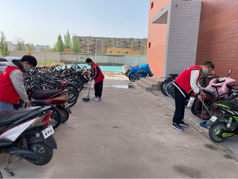 在十三、十五号公寓周围的自行车停放点位上,存在自行车杂乱摆放的现象,有不少单车因为天气原因倒在了地上。在该区域进行志愿活动的志愿者们对各宿舍楼下的自行车停放点进行了简单的整顿,将各车辆摆放到指定位置。部分车有厚厚的铁锈和灰尘,但志愿者们并不介意。并且为了让骑车的同学能够方便找到自己的自行车,志愿者们采用了就近原则摆放。自行车虽然方便了同学们的出行,但也带来了一系列的问题,尤其是摆放问题,一些不经常使用的自行车摆放的横七竖八,这些也为同学们带来了不便。志愿者的这些举措不仅仅是在摆放自行车,还在于提醒我们自己,提醒校友们。即使没有志愿活动,若是每位同学都严于律己,将自己的自行车摆放到正确的位置,自行车也会整齐。