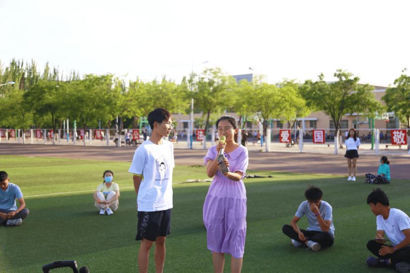 第一个活动是随机应变大比拼,该活动分为两个小游戏,所有学生围成一个大圈坐在操场上,第一个游戏是圈内同学按照顺序说出数字1,2,3…在每位选手不知情的情况下来抢答数字,不能同时有两个选手喊出相同的数字,并对同时起身抢答者进行小组扣分。第二个游戏是丢毽子的比赛,绕圈将毽子丢在随机一个学生的身后并迅速回到自己位置,该学生要在对方回去之前追上对方则可以为自己小组得分,反之就要挑选下一个幸运儿。