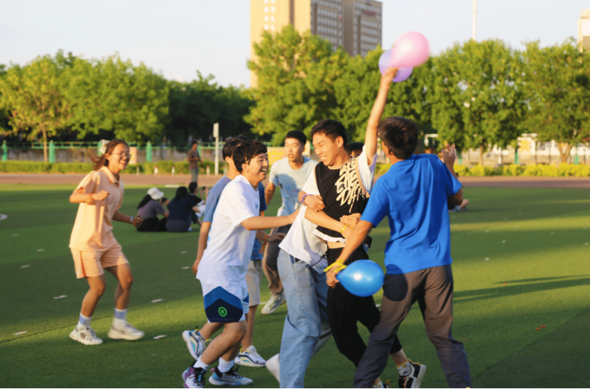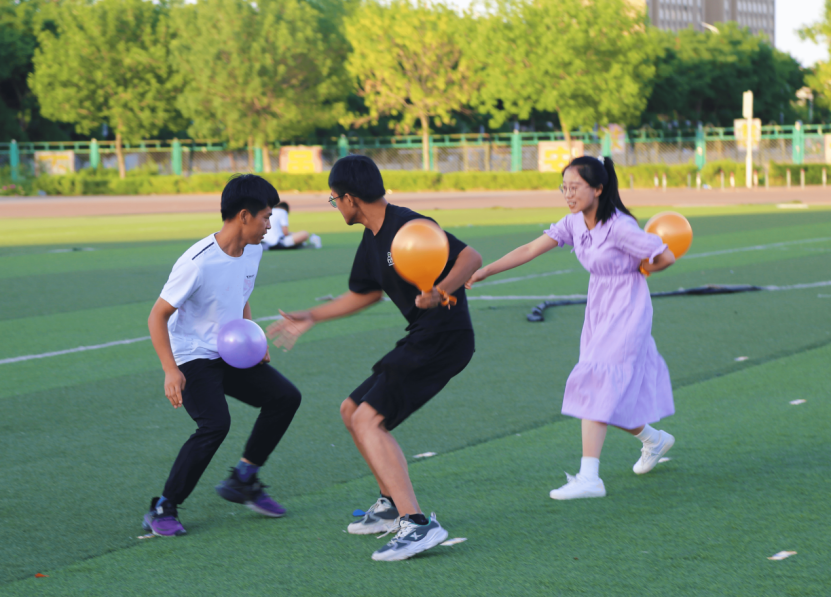 最后一个活动是气球保卫战,每个组依次派出两名成员,每个成员会有两个气球,每组在固定时间内,要保护己方气球并去破坏其他两组的气球,最后剩余气球最多的组赢得本场比赛。该活动大大激发了参赛选手的积极性,考验了选手的灵活走位和队友之间的合作能力。在操场上每个选手都激情四射,挥洒着蓬勃的朝气。在经过一个多小时的激烈比赛后,联谊活动-趣味运动会正式告一段落,通过几场活动后的最终得分,决出每个组的比赛的名次,最后由两个部门一起为大家颁发奖品。