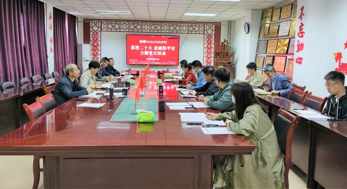 党委在知行楼415会议室开展“喜迎二十大 忠诚保平安”主题党日(扩大)活动。学院党委委员和各党支部书记参加活动,活动由学院党委书记陈晓敏主持。