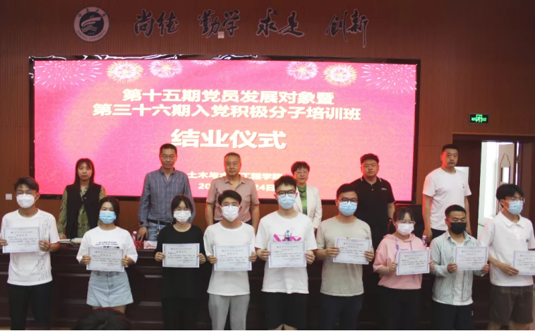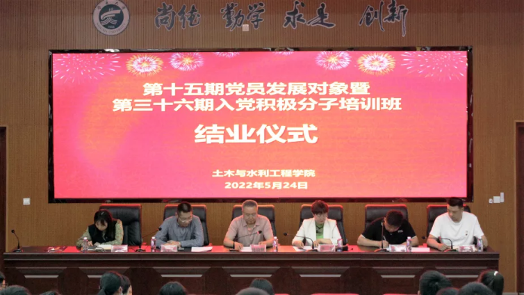 召开第十五期发展对象暨第三十六期积极分子培训班结业仪式,学院党委书记陈晓敏,党委副书记尹娟、苏宇静,学院各学生党支部书记以及参与此次培训的全体积极分子和发展对象参加结业仪式,会议由何涛老师主持。