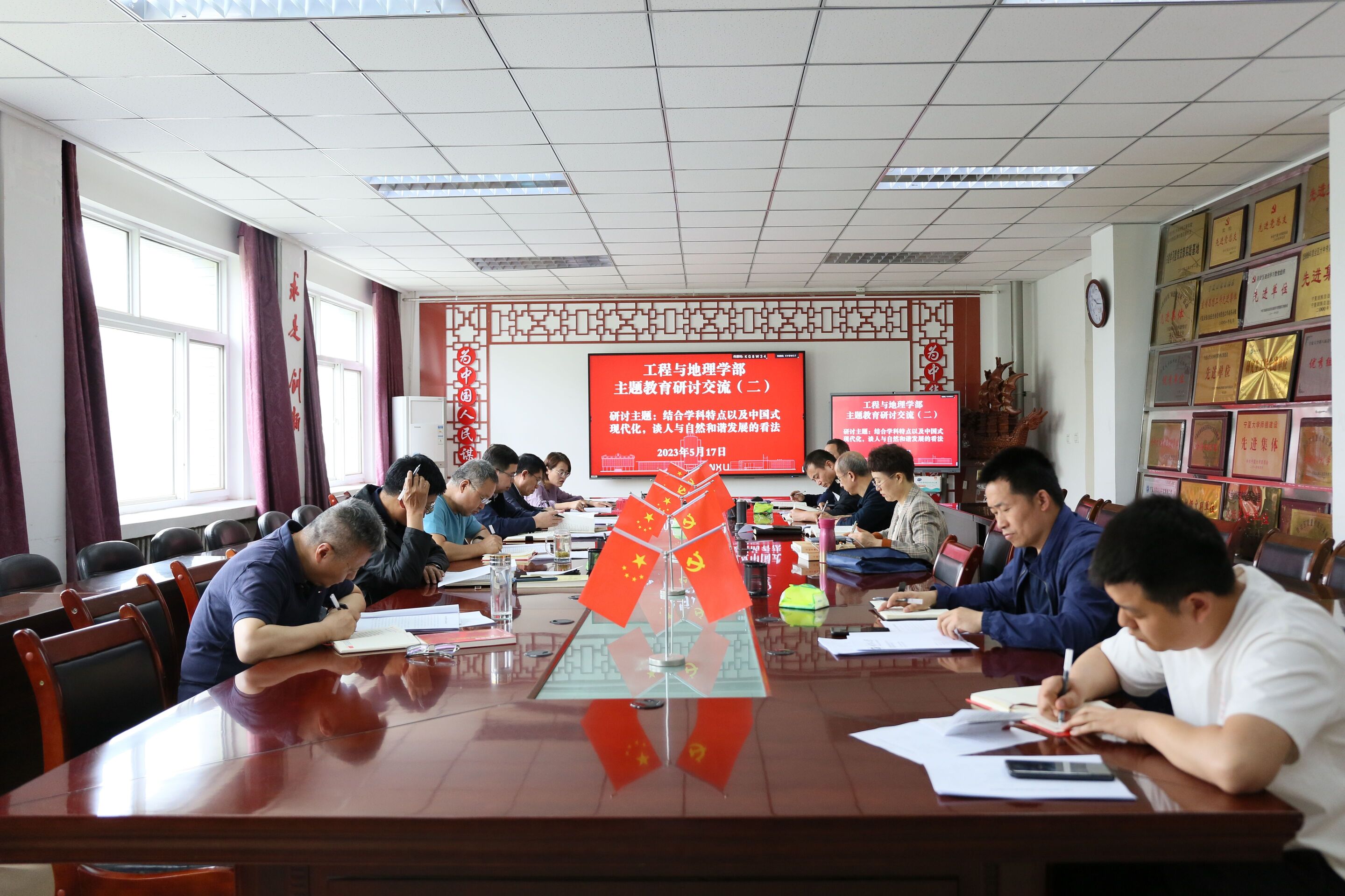 5月17日,工程与地理学部召开主题教育专题研讨会,以中国式现代化、习近平生态文明思想为专题进行研讨交流,同时结合学部制改革,以检视问题促提质增效,确保扎实开展主题教育。学部副科级以上领导干部参加会议,会议由学部党委书记陈晓敏主持。