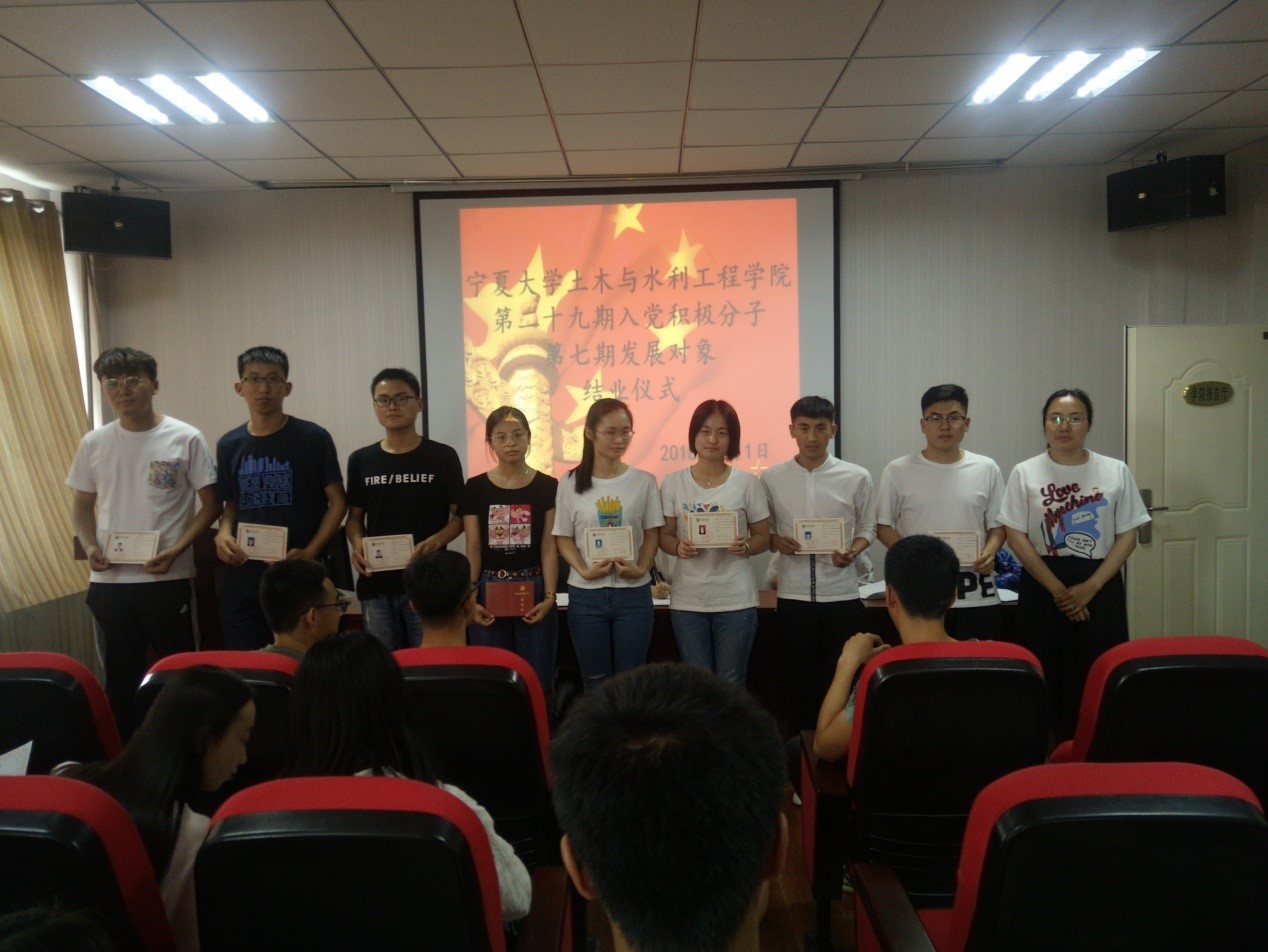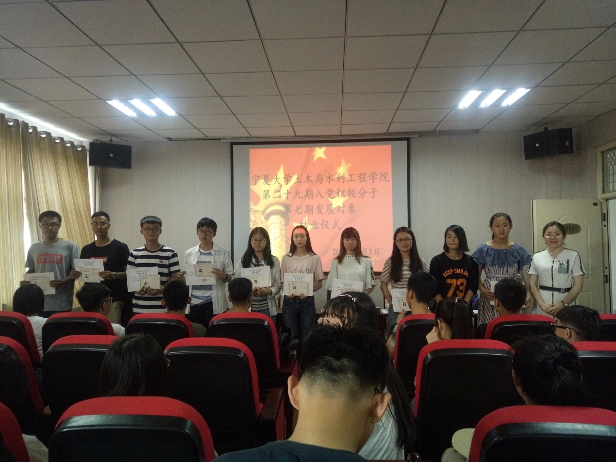结业仪式上,土木本科党支部书记蒋宇欢老师宣读了第二十九期积极分子结业名单,水利本科党支部书记陶雪梅老师宣读了第七期发展对象名单,交管本科党支部书记王娜老师宣读了优秀学员名单,学院党委副书记柳松洁老师和王娜老师分别为第二十九期入党积极分子优秀学员和发展对象学员代表颁发了证书。之后,第二十九期入党积极分子优秀学员代表常金鹏同学代表讲话。