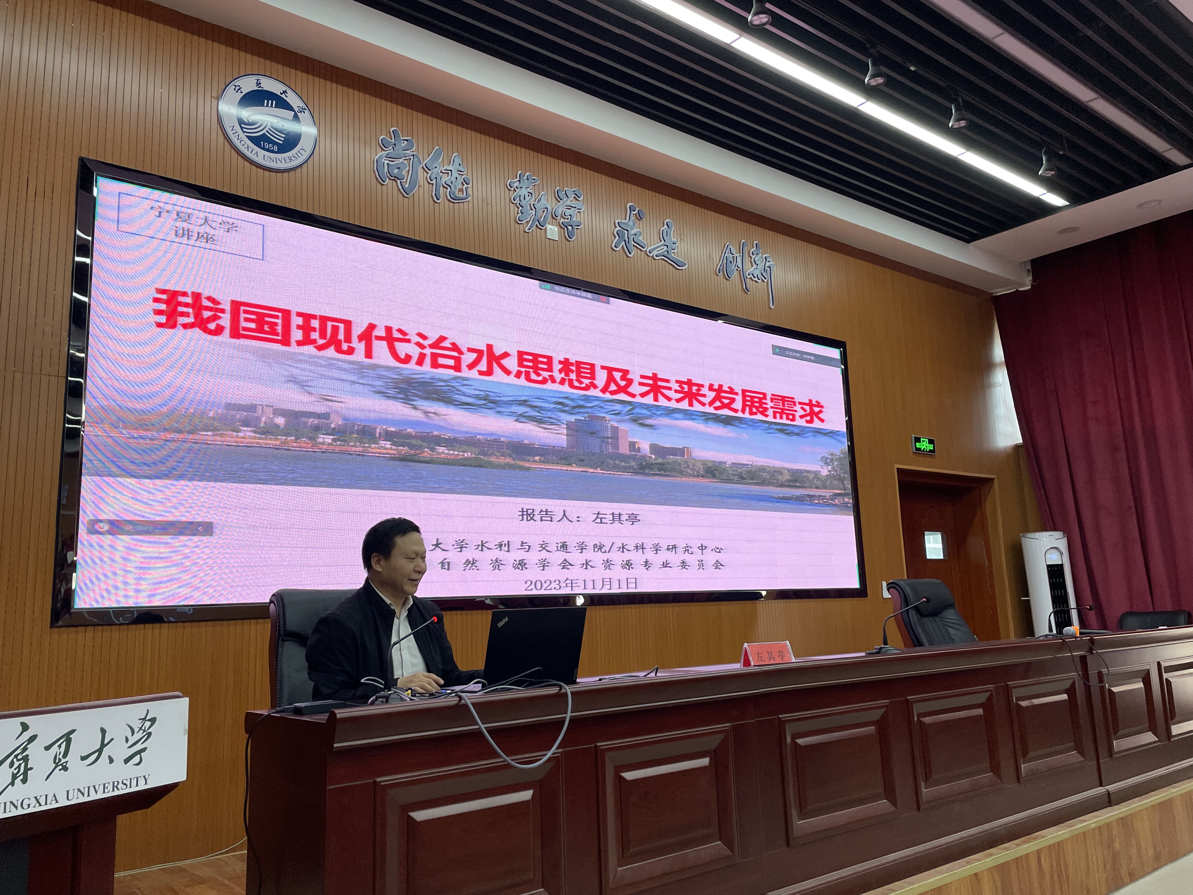邀请,水资源领域知名专家郑州大学水科学研究中心主任左其亭教授出席学院第十五届研究生学术论坛并做题为“我国现代治水思想及未来发展需求”的学术报告。报告会由副院长李王成主持,线上线下同步的方式进行,现场有院党总支书记尹娟、副书记徐利岗、水利系师生160余人参加,另有200余人通过线上方式聆听了报告。校党委常委、副校长王忠静出席并讲话。