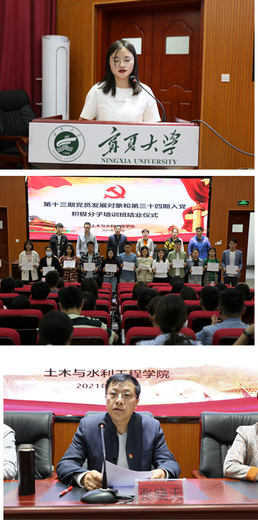 第十三期党员发展对象和第三十四期入党积极分子培训班结业仪式在知行楼三阶报告厅举行。学院党委书记张晓天、党委副书记苏宇静、尹娟,各学生党支部书记、培训班全体学员参加了本次结业仪式,会议由学生办公室何涛老师主持